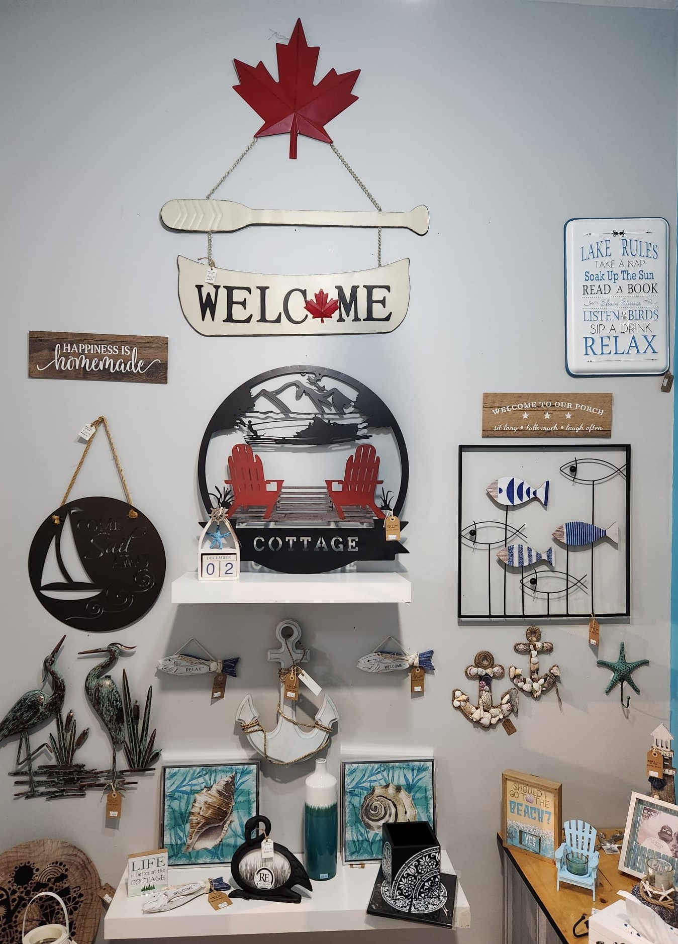 So if you are looking for casual décor for your cottage or home  be it more formal or contemporary or some stylish clothing and accessories we have you covered either way! Come in and browse our multiple rooms filled with amazing inventory to choose from.